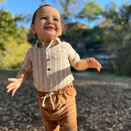 These adorable brown corduroy pants from Me & Henry are built for real-life adventures. The adjustable drawstring waistband makes getting dressed a breeze, while snap buttons on smaller sizes keep diaper changes quick and fuss-free. Soft, durable, and endlessly versatile, they're the go-to choice for parents who want comfort and style wrapped into one. Your little one will love how they feel, and you'll love how easy they are to manage.