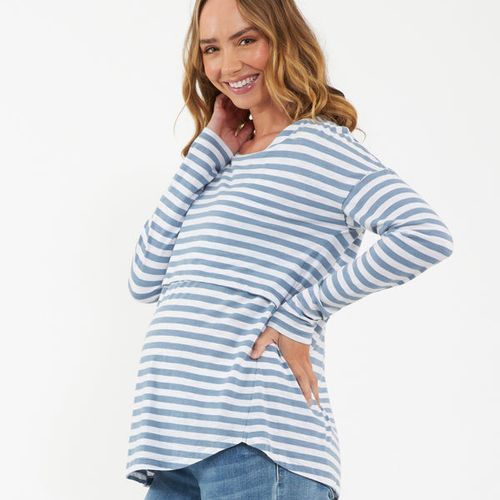 Featuring a subtle boat neck, a relaxed dropped shoulder, and an easy boxy fit, the Lionel Long Sleeve Nursing Tee takes all of the time-honored details of a sailor shirt with its yarn-dyed stripe, and adds a contemporary spin with easy nursing access. Plus, it’s made from soft cotton-modal blend.