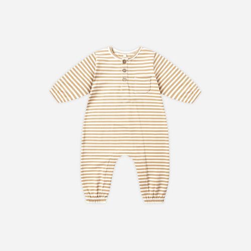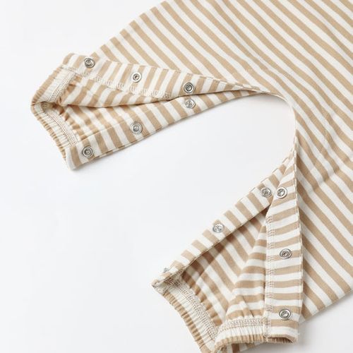 This Long Sleeve Jumpsuit is the ultimate one-piece wonder for your little one! Crafted with a soft, comfortable silhouette, it features a charming small chest pocket and button placket that give it that timeless, put-together vibe. The convenient snap closures at the inseam (on sizes 0–3M through 18–24M) mean diaper changes are a breeze—no wrestling required! Dressed in an eye-catching gold stripe pattern, this jumpsuit transitions effortlessly from playdates to family outings. It's the kind of piece that makes getting dressed fun for both you and your little fashionista.