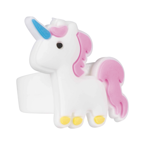 Each unicorn head or full body is made of soft plastic, and ring bands are made of adjustable plastic that fits most finger sizes. Each band is designed for comfort and comes in white, purple, blue, or pink. Popular for party favors , classroom prizes or stocking stuffers.