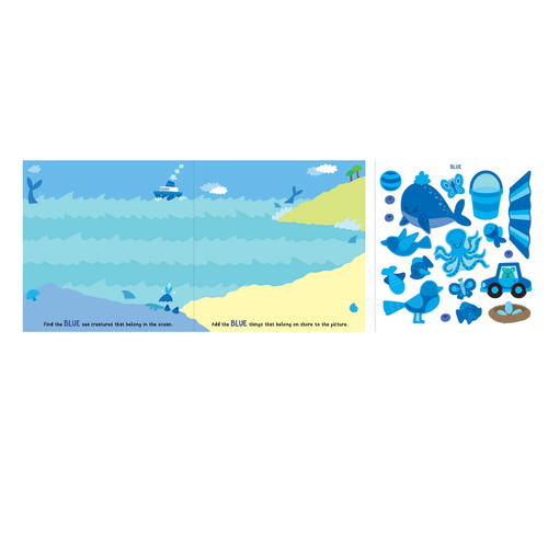 - Youngsters can populate each setting with the color-related stickers provided, including animals, objects, and other embellishments!