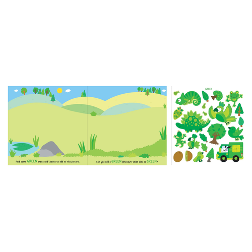 My First Sticker Book: Colors comes with 9 different scenes to complete with more than 175 repositionable stickers!