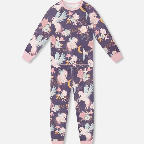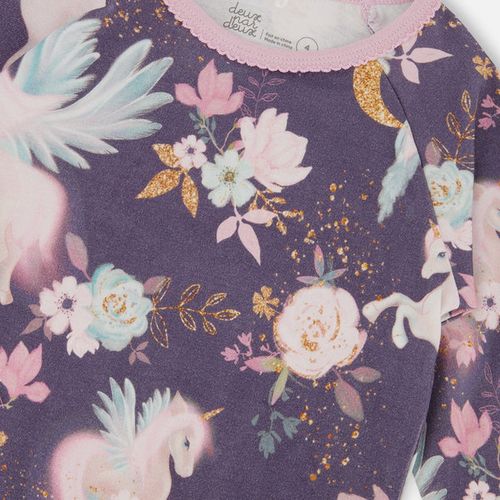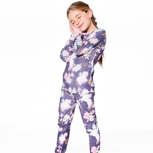 This comfy organic cotton sleep set turns bedtime and wake-up time into a magical moment! Designed for cozy nights and relaxing days, these super-soft pajamas include a long raglan sleeve top with a crew neck and elastic waist pants with snug cuffs, all adorned with a charming watercolor unicorn print.