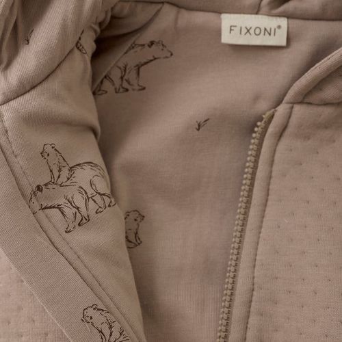 This cozy Fixoni wholesuit in a charming solid shade features a delightful all-over printed lining. The diagonal zipper from the center down to the right leg makes dressing your little one a breeze. It comes with a snug fixed hood plus fold-over footies and mittens to keep your child comfy and covered.