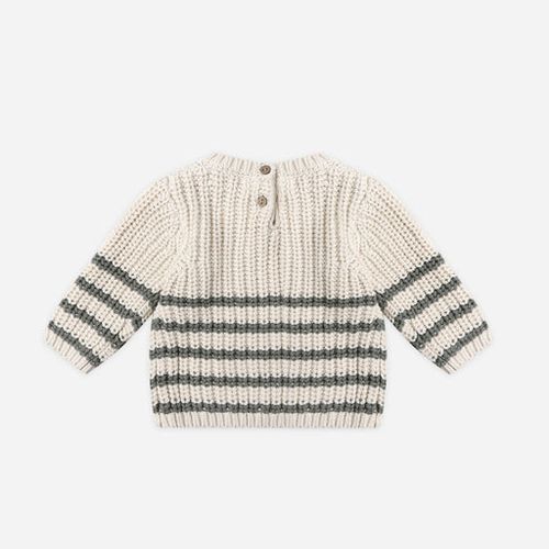 Cozy and chunky, our Rex Sweater is the ultimate comfort piece for little ones who love to play hard and snuggle harder. Featuring ribbing at the neck, cuffs, and hem for a secure, stay-put fit, this sweater won't ride up during adventures. The back button placket makes diaper changes and getting dressed a breeze—no wrestling match required! Available in rich forest and natural hues that pair perfectly with any outfit in the closet. Whether your kiddo is building blanket forts or heading out for a crisp autumn day, the Rex Sweater delivers warmth, durability, and that perfectly lived-in softness that gets better with every wash.