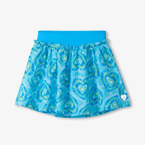 Bring playful style to her active wardrobe with this charming skort! Featuring a vibrant blue tie-dye base adorned with adorable heart-shaped details, it's designed for girls who love expressing their personality. The stretchy polyester-spandex blend ensures comfortable, unrestricted movement, while built-in shorts provide the coverage she needs. A bold blue waistband with a gathered seam creates a flattering fit, and the ruffled waist detail adds that extra twirl-worthy flair. Perfect for playdates, sports, or everyday adventures—this skort combines comfort, confidence, and cuteness in one spirited package.