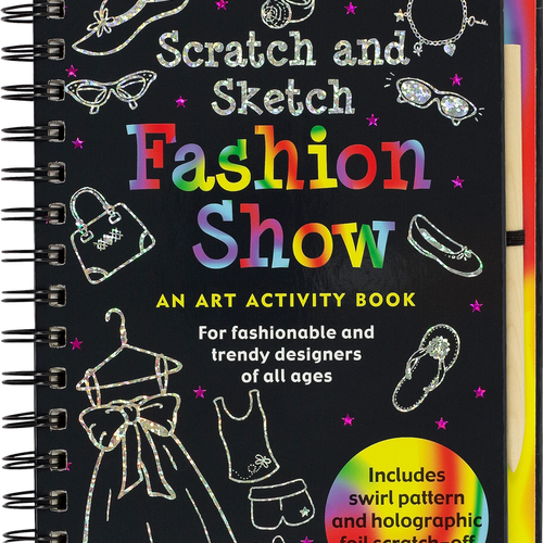 Create your own fashion designs with this playful art activity book! Use the white outlines on black scratch-off pages to reveal fun patterns and colors, and draw on the sketch pages in the back to add your own flair. Includes 20 scratch-off pages, 20 illustrated pages, and 20 blank pages for extra creativity. Ages 5+. Hardcover, 64 pages.