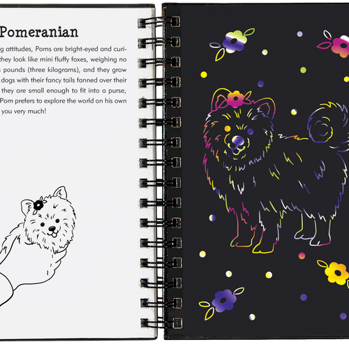 Playfully scratch (and sketch) cute puppy ears to reveal hidden colors with this Trace-Along Scratch and Sketch! Meet lively Labradors, clever German shepherds, gentle golden retrievers, and more. Perfect for children (5 and up) to explore their creativity and build confidence. Book includes 20 scratch-off pages, 20 illustrated pages, and 20 extra pages for drawing. Wooden stylus included. Suggested ages: 5 and up. Sturdy wire-o hardcover, 64 pages.