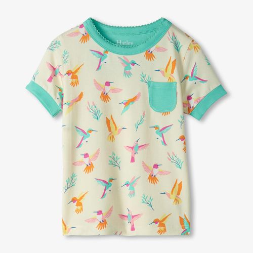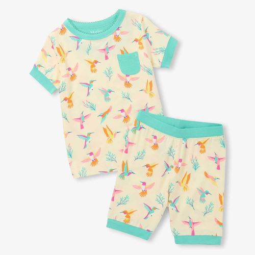 Let your little one flutter into dreamland with this enchanting short pajama set featuring delightful hummingbirds. Crafted from a breathable bamboo and elastane blend, it keeps her cool and cozy on warm nights while the silky fabric feels wonderfully gentle against her skin. The seamless design means no scratchy seams to bother sensitive skin, and the snug-fit cut meets safety standards for worry-free sleep. Perfect for springtime adventures and bedtime bliss, this set celebrates her love of nature in style.