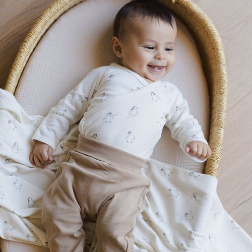 Keep your little adventurer snug and stylish with the Side Snap Bodysuit + Pant Set in an adorable penguins print! Crafted from soft, brushed jersey, this outfit promises cozy comfort from morning snuggles to afternoon playtime. The bodysuit’s convenient side snaps make dressing and diaper changes a breeze, while the matching pants feature a roll-over ribbed waistband and snug ribbed cuffs to stay put during all the wiggles and giggles. In a charming 'gold' hue, this playful set is perfect for any day your little one wants to waddle through with warmth and cuteness.