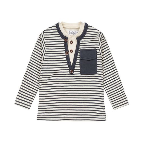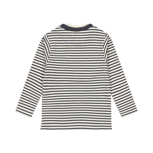 A wardrobe essential that never goes out of style! This navy and cream striped long-sleeve tee from Dirkje brings classic Breton charm with a modern twist. Featuring a fun chest pocket and a clever button-up collar detail, it's designed to keep your little one looking sharp and feeling comfy. Crafted from soft cotton, it's the perfect layer for chilly weather and outdoor play.