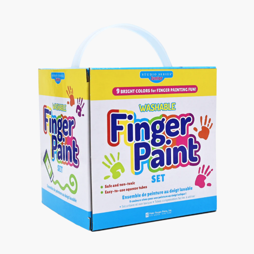 Let your little artist's imagination run wild with the Studio Series Junior Finger Paint Set! This vibrant collection features 9 tubes of washable, non-toxic paint in bold hues—Red, Orange, Yellow, Green, Purple, Pink, White, Dark Blue, and Teal. The easy-squeeze 2-ounce tubes are perfectly sized for small hands, while the convenient flip-top design keeps mess to a minimum. Kids will love exploring color mixing and creative expression while developing fine motor skills and enjoying sensory play. The sturdy, portable storage box with handle makes it simple to keep paints organized and transport them anywhere. Safe, washable, and ready for endless creative adventures!