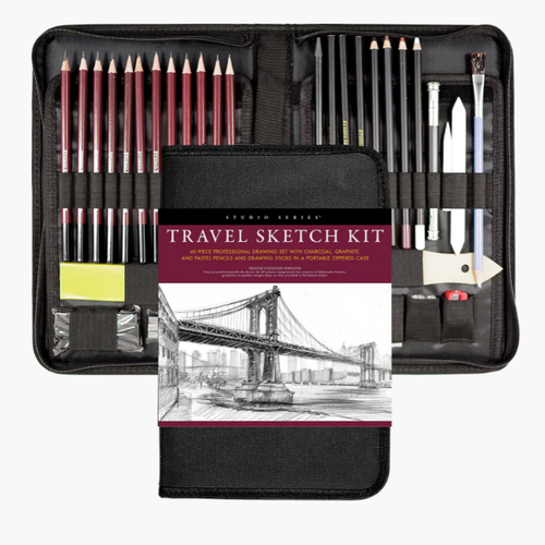 Ready to sketch on the go? This 40-piece travel companion packs everything an artist needs into one compact, zippered case. You'll find graphite pencils, charcoal sticks, pastel pencils, blending stumps, sharpeners, and more—all organized in elastic slots that keep supplies secure during adventures. Whether you're capturing inspiration at a café or sketching during downtime, this kit delivers professional-quality tools in a portable 7.5" x 11.6" package. Create anywhere, anytime!