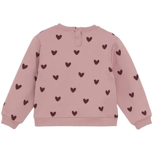 This adorable Woodrose sweatshirt from Creamie is perfect for adding a touch of fun to any outfit. Covered in a charming all-over heart print, it brings a playful vibe to your child’s wardrobe. Thoughtfully designed with soft ribbed edges at the cuffs, collar, and hem, it ensures a snug and comfortable fit all day long. The back features two easy-to-use buttons, making dressing and undressing a breeze while adding a sweet, stylish detail. Perfect for cozy playdates or casual adventures, this sweatshirt combines comfort and cuteness effortlessly.