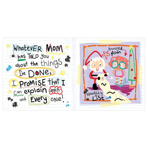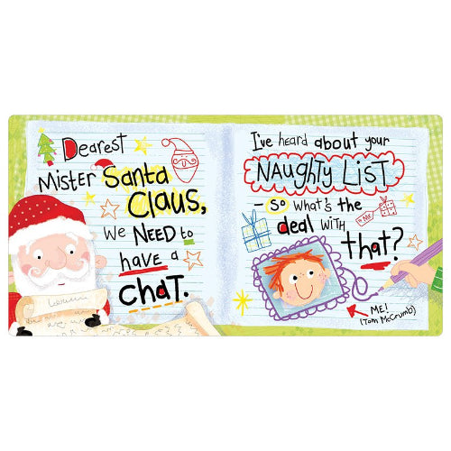 A brand-new board book told in the form of a letter to Santa. The letter is written by a boy named Tom, who is trying to convince Santa to put him on the Nice List, even though his behaviour has been bad all year! Hear all about the things Tom has done, and the ways he tries to spin them to Santa. With childlike, humorous art that will have the whole family giggling this Christmas, this is a very naughty story for good boys and girls! A FESTIVE BOARD BOOK WITH A FUNNY TWIST ON THE CLASSIC LETTER-TO-SANTA THEME