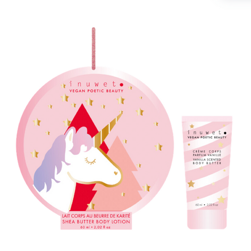 This adorable Inuwet unicorn ornament is the perfect beauty box for little ones, and it's sure to be a hit at Christmas time! Inside the beautifully decorated box, featuring a golden unicorn, you'll discover a nourishing body cream with a delicious vanilla scent.