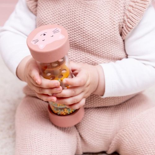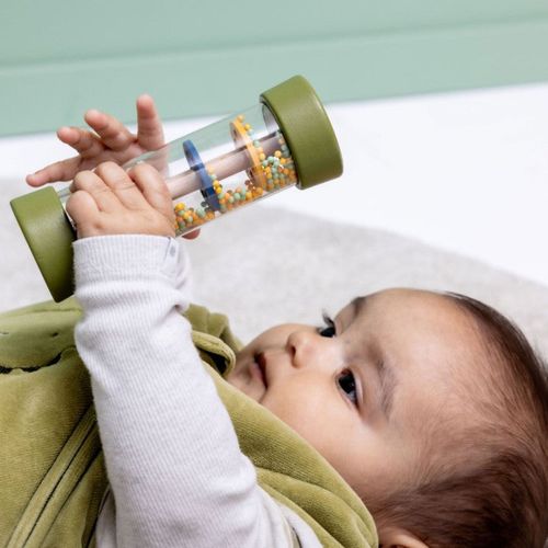 Is it raining outside? Oh, it's baby's new rain stick! Your favourite animal friend comes with pretty beads that swirl and fall through colorful discs, creating a soothing rain sound and lots of motion to watch. Today it's a rattle, tomorrow it's a musical instrument - a toy that truly grows with your little one.